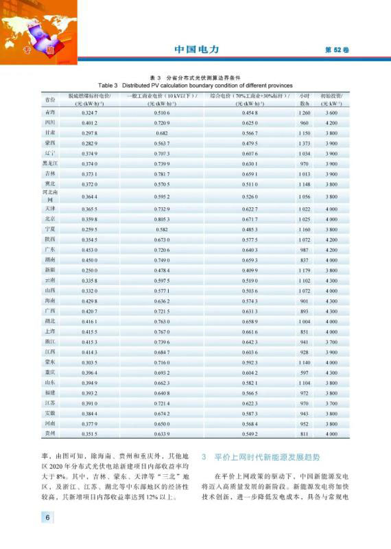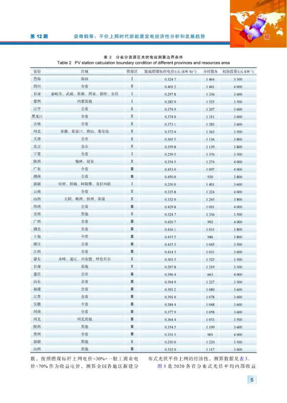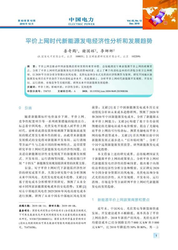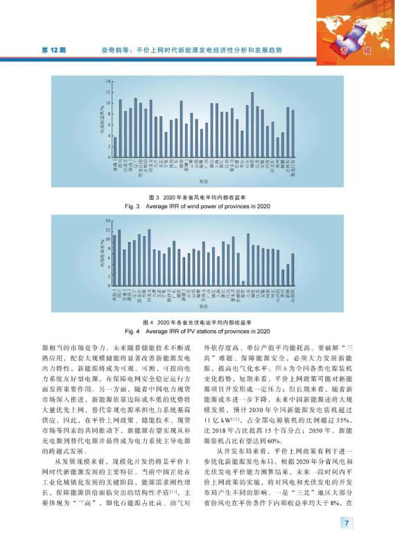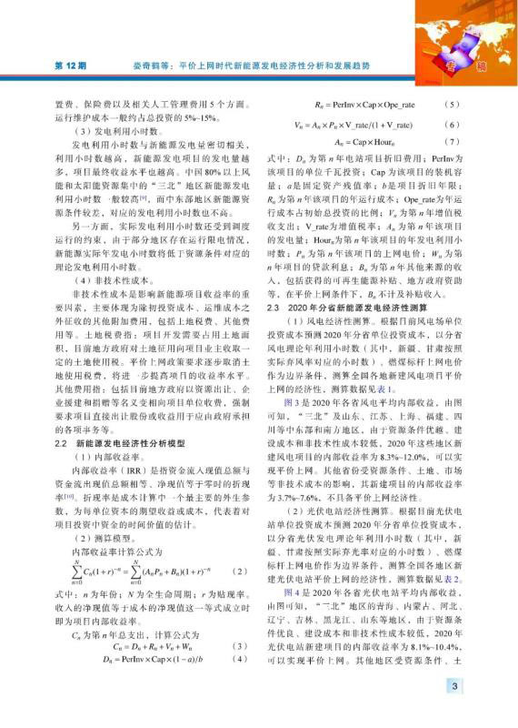 平價上網(wǎng)是推動中國新能源高質(zhì)量發(fā)展的重要舉措??偨Y(jié)梳理近年來新能源平價上網(wǎng)的政策要點,分析了平價上網(wǎng)時代新能源發(fā)電經(jīng)濟性的影響因素,建立了基于內(nèi)部收益率的經(jīng)濟性分析方法和模型,以2020年全國分省分資源區(qū)的風(fēng)電場、光伏電站和分布式光伏的經(jīng)濟性測算為案例,研究不同地區(qū)新能源發(fā)電項目在平價條件下的內(nèi)部收益率水平。在此基礎(chǔ)上,分析平價上網(wǎng)時代新能源開發(fā)規(guī)模、開發(fā)布局、運行消納、市場競爭等關(guān)鍵問題,研判未來中國新能源發(fā)展趨勢。