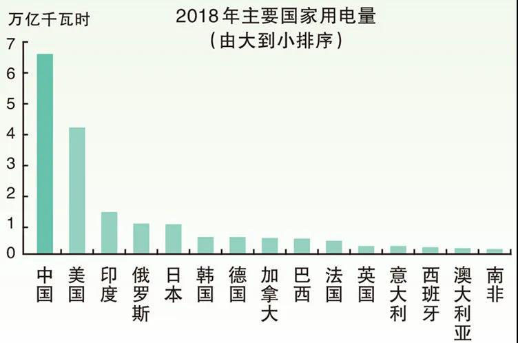 中國電力消費約為美國的1.6倍;中國、美國、印度三國合計占全球總量的一半。