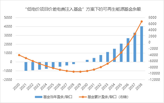圖 1 “低電價項目價差電費注入基金”方案下的測算