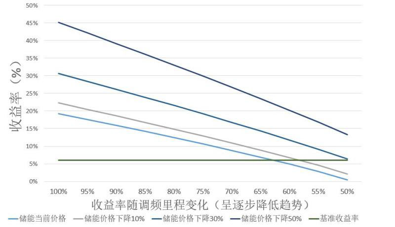 這個(gè)是針對(duì)目前新政情況下儲(chǔ)能輔助調(diào)頻的一個(gè)項(xiàng)目的經(jīng)濟(jì)性分析,因?yàn)樽罱鼜V東省出臺(tái)一個(gè)政策,正在征求意見(jiàn),要在8月1號(hào)實(shí)施。首先KP值的算法變了,大概收入要減少30—40%,每年的里程數(shù)還會(huì)繼續(xù)削減。基于這個(gè)最惡劣的情況,我做了一個(gè)估算,結(jié)果發(fā)現(xiàn)還行,這個(gè)類型的儲(chǔ)能項(xiàng)目還可以繼續(xù)做。投資回收期可能由不到兩年變成五年左右,隨著目前電池技術(shù)不斷發(fā)展和控制策略不斷優(yōu)化,把一個(gè)儲(chǔ)能電站用到五年是完全沒(méi)有問(wèn)題的,如果運(yùn)維水平高的話,也許四年就成本回收了。