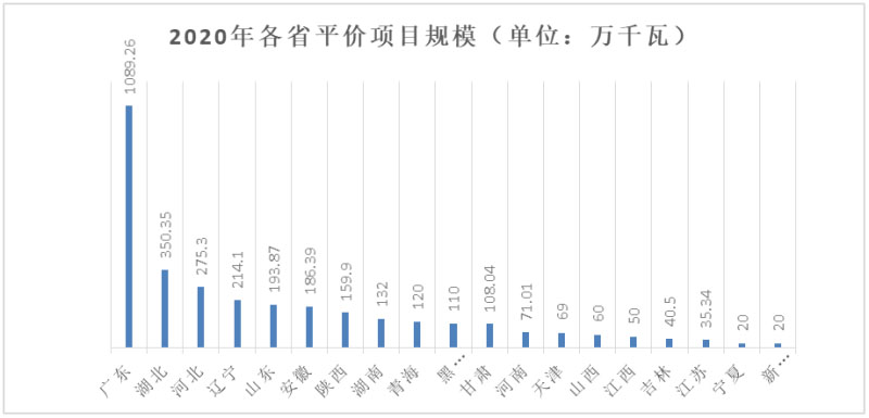 從省份來看,山東省獲批的項目個數(shù)最多,為544個,但其中有511個項目為平價的分布式光伏。另外,廣東省此次獲批了10.89GW的平價項目,是所有省份中批復容量最高的。