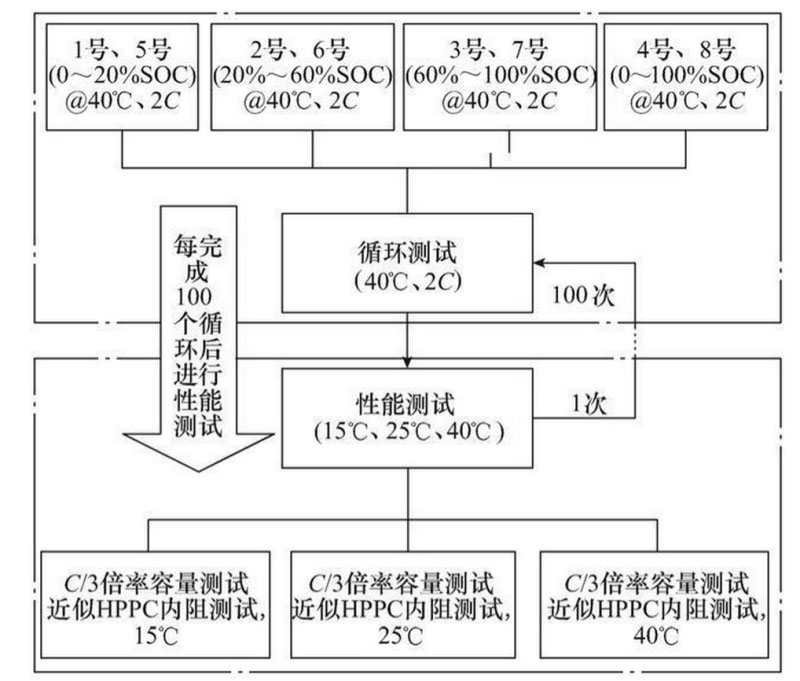 鋰離子電池在不同容量區(qū)間和不同工況應(yīng)力下使用衰退性能不同。北京交通大學(xué)國家能源主動(dòng)配電網(wǎng)技術(shù)研發(fā)中心、北京電動(dòng)車輛協(xié)同創(chuàng)新中心、北京新能源汽車股份有限公司的研究人員孫丙香、劉佳、韓智強(qiáng)、任鵬博、張維戈,在2020年第9期《電工技術(shù)學(xué)報(bào)》上撰文,以復(fù)合材料鋰離子電池為研究對(duì)象,基于電化學(xué)相變機(jī)理對(duì)循環(huán)區(qū)間進(jìn)行劃分,在分區(qū)間和全區(qū)間分別完成了累計(jì)吞吐量600次的循環(huán)測(cè)試。