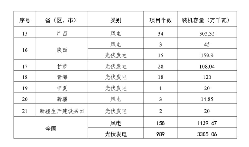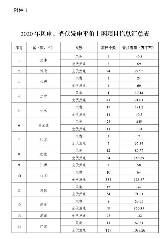 1.2020年風電、光伏發(fā)電平價上網(wǎng)項目信息匯總表