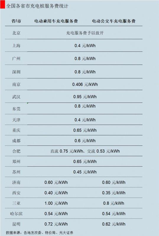 另一方面影響充電樁生意的就是服務(wù)費(fèi),在服務(wù)費(fèi)這塊,由各地政府和發(fā)改委自行制定,上限定的死死的。從目前多省市的公告和政策來(lái)看,充電服務(wù)費(fèi)有持續(xù)下降的趨勢(shì)。