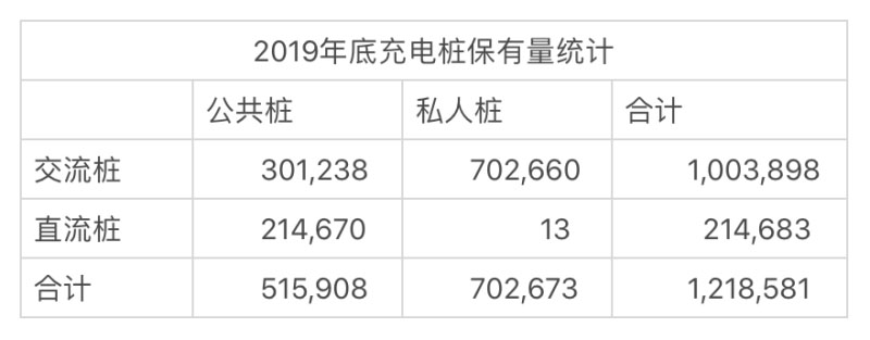 根據(jù)中國(guó)充電基礎(chǔ)設(shè)施促進(jìn)聯(lián)盟(EVCIPA)統(tǒng)計(jì),截止2019年底,公共樁合計(jì)51.59萬(wàn)臺(tái),其中交流樁30.12萬(wàn)臺(tái),直流樁21.47萬(wàn)臺(tái);私人樁合計(jì)70.267萬(wàn)臺(tái),其中交流樁70.266萬(wàn)臺(tái),直流樁13臺(tái)。充電樁總計(jì)121.86萬(wàn)臺(tái)。