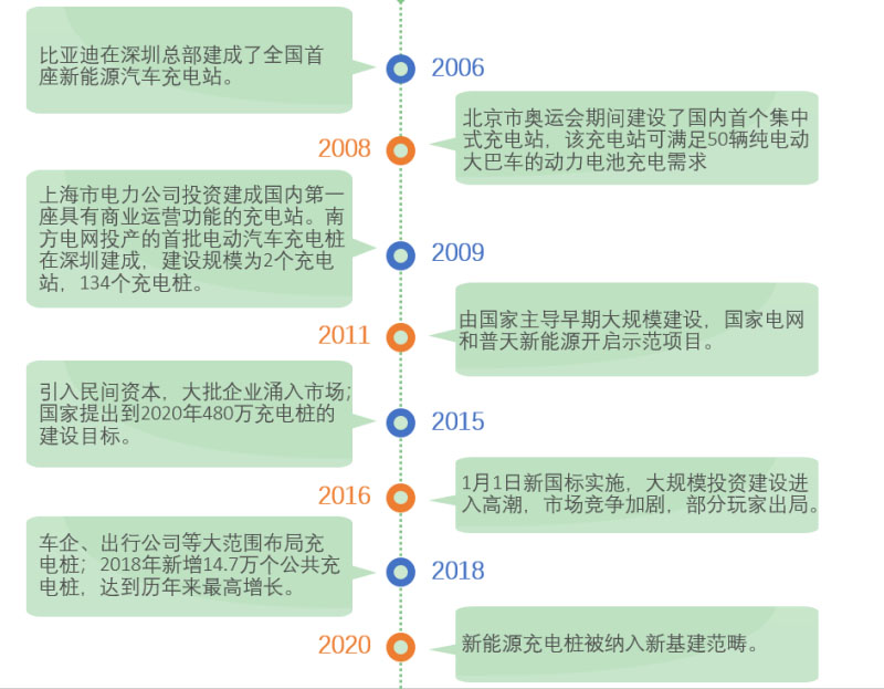 以下是充電樁行業(yè)發(fā)展歷程及標(biāo)志性事件: