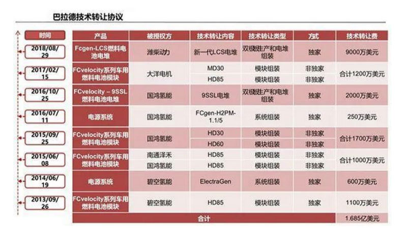 2013年起,巴拉德公司逐步授權(quán)多家中國公司燃料電池技術(shù)轉(zhuǎn)讓,在中國建立依賴自身技術(shù)的生產(chǎn)線,并向中國燃料電池汽車供應(yīng)巴拉德的產(chǎn)品。