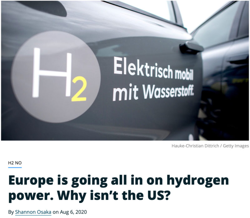 Grist.org網(wǎng)站發(fā)表署名Shannon Osaka 的文章,題目是:Europe is going all in on hydrogen power. Why isn’t the US?(歐洲正在全力發(fā)展氫能,為什么美國沒有這樣做?)