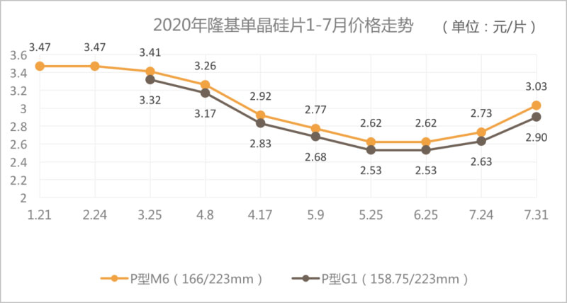 上述企業(yè)認為,上周硅片價格調整至2.9元/片,實際漲價0.6元/片,并且該硅片價格已經執(zhí)行,而2.9元的硅片價格對應硅料價格約為100元/kg,“考慮需求穩(wěn)定發(fā)展、順應供需關系,最終硅料也根據(jù)硅片漲幅進行了跟進,最新報價提升至98元/g”。就在上周,單晶硅片龍頭隆基股份宣布再次再次調漲硅片價格,其中G1報價2.9元/片,M6為3.03元/片。
