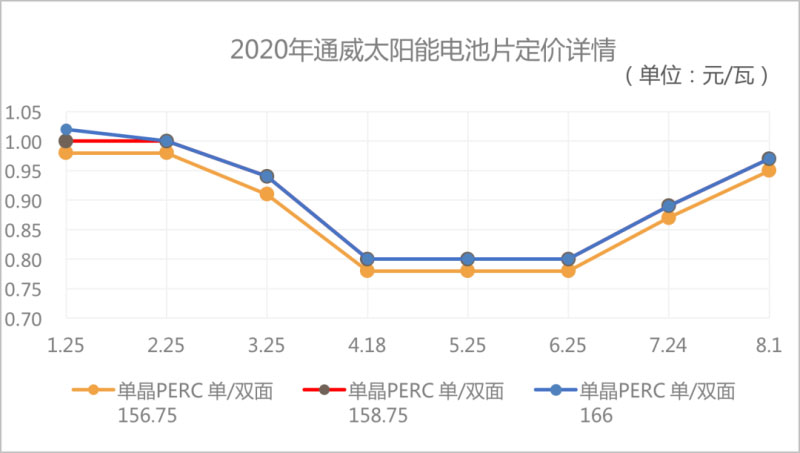 從電池價格來看,某龍頭企業(yè)認為,“大尺寸電池供不應求,理論上電池片價格會一直上漲,但是二季度組件價格已經很低,未來電池價格走勢還要看組件價格已經簽訂的部分如何調整以及未來的簽訂價格。目前還在博弈中,價格不好預判?!比欢?,緊隨多晶硅98元/kg的報價之后,通威已經將電池片報價提高到了0.98元/瓦。