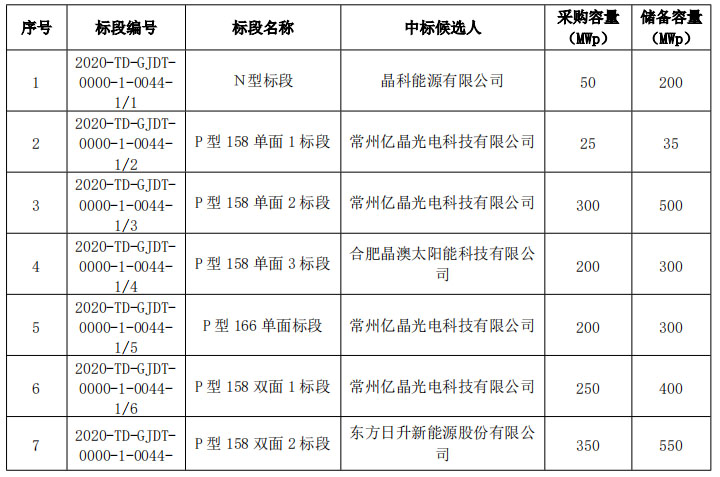 此外,在上周開標(biāo)的中廣核集采中,其河北、安徽兩個(gè)標(biāo)段已經(jīng)公示了中標(biāo)候選人,其中河北標(biāo)段中標(biāo)企業(yè)為晶澳,單價(jià)1.55元/瓦,組件要求為單面445W;安徽區(qū)域標(biāo)段公示了三個(gè)中標(biāo)候選人,億晶、晶澳與隆基分別位列前三位中標(biāo)候選人,其單價(jià)分別為1.58、1.56以及1.65元/瓦,組件要求為440瓦單面。