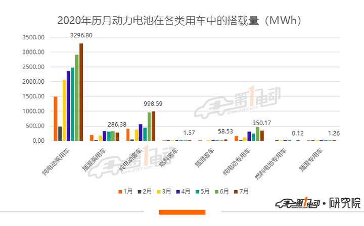 純電動專用車和插混乘用車方面,7月產量分別為5,008輛和1.7萬輛,裝機量分別為350.2MWh和286.4MWh。