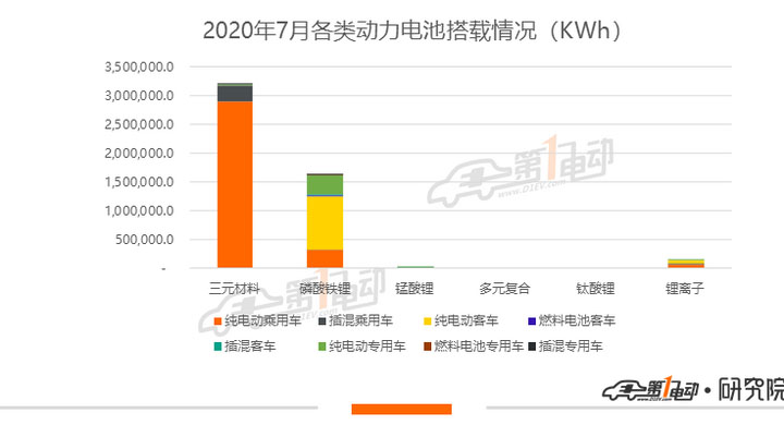 7月純電動車型裝機4.65GWh,占比93%,插混車型裝機346.2MWh,燃料電池車型裝機1.69MWh。