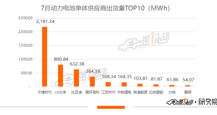 7月寧德時代裝機2.18GWh,環(huán)比下跌7.2%,市占率也下降了約6個百分點。