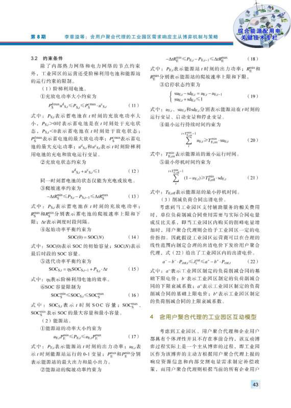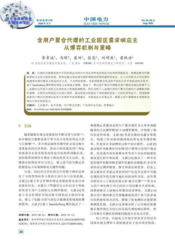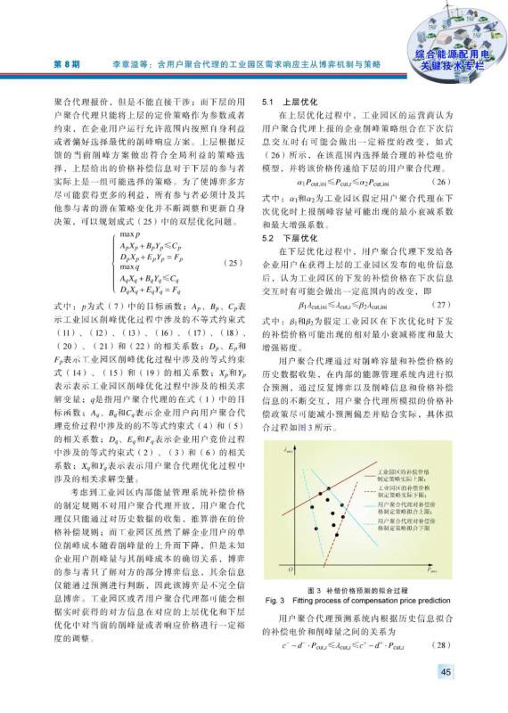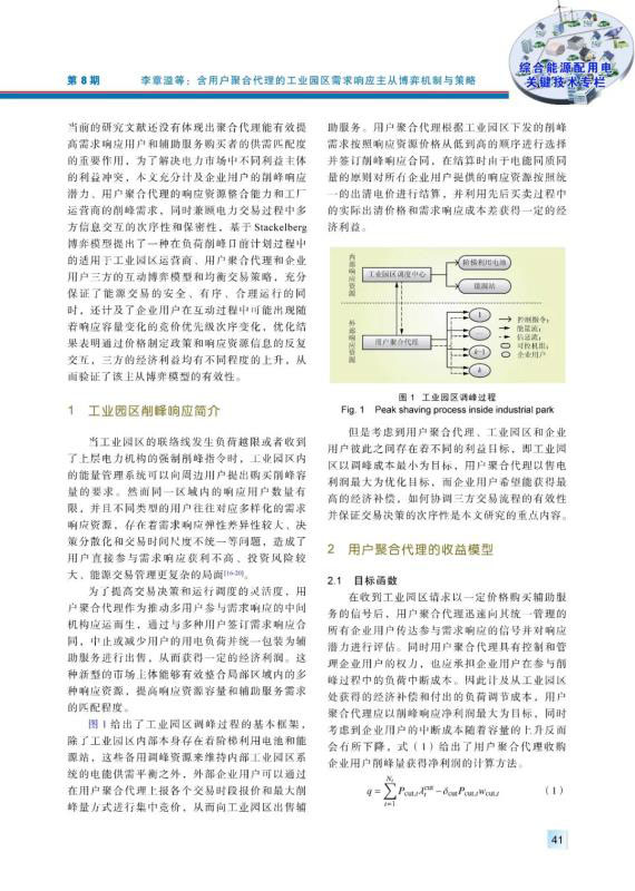 區(qū)域綜合能源系統(tǒng)中不同的利益主體往往具有多樣化的優(yōu)化目標(biāo)和供用能需求,特別是聚合代理新型電力交易主體的出現(xiàn),使得電能交易的相關(guān)調(diào)控策略和決策機(jī)制更加復(fù)雜,引入以價(jià)格為主導(dǎo)的博弈機(jī)制來(lái)協(xié)調(diào)均衡多方利益的對(duì)立是一個(gè)必然的趨勢(shì)??紤]到能源交易過程中的先后次序和波動(dòng)性變化等,基于Stackbelberg博弈理論和電力市場(chǎng)基本規(guī)則,提出了一種由用戶聚合代理整合用戶側(cè)需求響應(yīng)資源并與工業(yè)園區(qū)運(yùn)營(yíng)商互動(dòng)的主從博弈電力市場(chǎng)機(jī)制模型,然后分析了工業(yè)園區(qū)和用戶聚合代理的互動(dòng)策略和博弈規(guī)則,并利用雙層優(yōu)化方法進(jìn)行求解。通過優(yōu)化分析驗(yàn)證了該機(jī)制在保證三方的經(jīng)濟(jì)利益下,同時(shí)能夠改善用戶聚合代理和企業(yè)用戶在博弈中的弱勢(shì)地位,對(duì)優(yōu)化電力市場(chǎng)運(yùn)營(yíng)、降低大用戶調(diào)峰成本和緩解電網(wǎng)壓力具有重要意義。