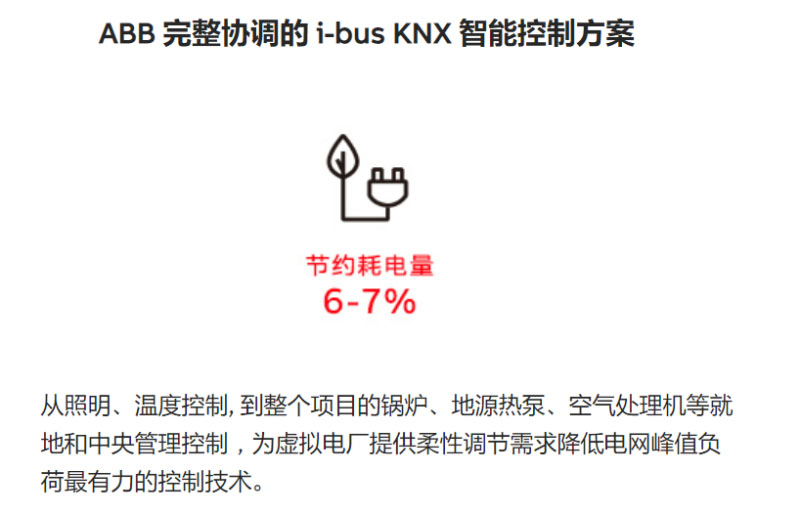 協(xié)調(diào)控制技術(shù)方面, ABB i-bus KNX智能控制系統(tǒng)提供照明、鍋爐、地源熱泵、空調(diào)機(jī)組等設(shè)備的就地和集中控制,為用電負(fù)荷實(shí)現(xiàn)柔性調(diào)節(jié),降低電網(wǎng)峰值負(fù)荷。例如,在冀北電網(wǎng)營(yíng)銷(xiāo)大樓中,通過(guò)對(duì)前端10臺(tái)空調(diào)機(jī)組進(jìn)行進(jìn)回水溫差設(shè)定。當(dāng)回水溫度低于設(shè)定值時(shí),系統(tǒng)將會(huì)自動(dòng)停止1臺(tái)空調(diào)工作,可立即降低該空調(diào)機(jī)組負(fù)荷的10%。通過(guò)優(yōu)化控制策略,實(shí)現(xiàn)在不犧牲用戶(hù)舒適性的前提下減少用電負(fù)荷。