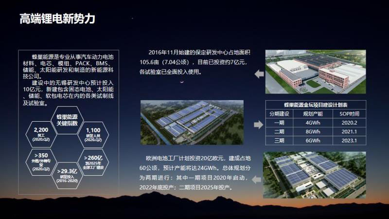 蜂巢能源的前身是長(zhǎng)城汽車(chē)動(dòng)力電池事業(yè)部,自2012年起開(kāi)展電芯的預(yù)研工作,2018年2月獨(dú)立為蜂巢能源。公司總部位于江蘇常州。是一家專(zhuān)業(yè)從事汽車(chē)動(dòng)力電池材料、電芯、模組、PACK、BMS、儲(chǔ)能、太陽(yáng)能研發(fā)和制造的新能源高科技公司。