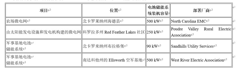 美國國家鄉(xiāng)村電力合作協(xié)會(NRECA)計劃部署的4個電池儲能項目列表
