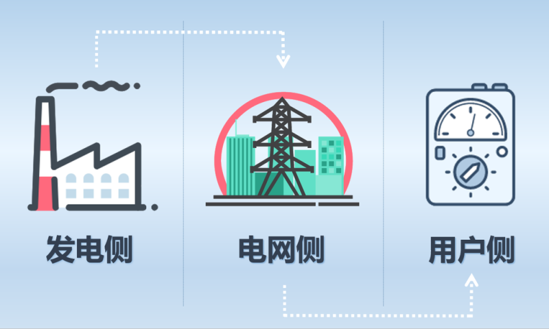 電作為一種商品,和其他商品一樣,也有其生產(chǎn)、輸送和消費(fèi)過程。與這三個過程相對應(yīng)的就是發(fā)電側(cè)、電網(wǎng)側(cè)和用戶側(cè)。