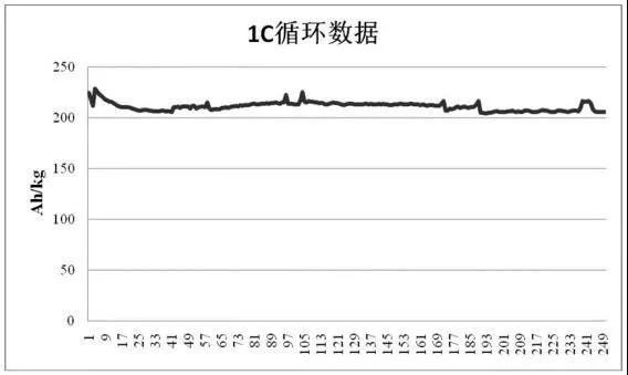 Ti0.97Nb2Ni0.03O7材料、導(dǎo)電炭黑、粘結(jié)劑的質(zhì)量比為90:5:5混合均勻制備成電極,金屬Li片作為對(duì)電極和參比電極,Clgarde作隔膜,1.2molLiPF6的EMC+EC(摩爾比為4:1)溶液為電解液,裝配成2032扣式電池,1C下首次放電容量為224.51mAh/g,250Cycles后容量保有率82%。