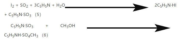正是因?yàn)樗趾勘容^重要,需要用高靈敏度的卡爾費(fèi)休方法測試:采用I2、SO2、吡啶、無水CH3OH配制成試劑,與樣品中水反應(yīng),計(jì)算出樣品中水含量,其測試原理見式(5)和式(6)