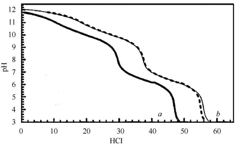 殘存堿測試通常采用酸堿電位滴定或人工滴定,將正極粉體分散到一定量純水中,過濾,量取一定體積的濾液用標(biāo)準(zhǔn)鹽酸溶液滴定。選取酚酞和甲基橙作指示劑,依次在pH≈8和pH≈4附近出現(xiàn)2個(gè)等當(dāng)點(diǎn),分別記錄所用標(biāo)準(zhǔn)鹽酸體積(圖7)。第1個(gè)等當(dāng)點(diǎn)發(fā)生如下反應(yīng)