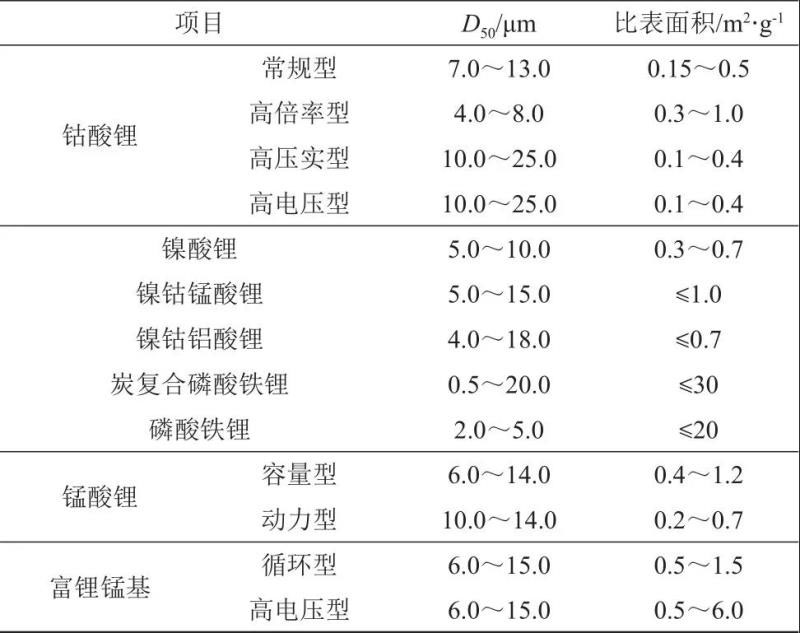 表5 正極材料標(biāo)準(zhǔn)中粒度要求