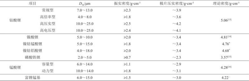 表6 正極材料標(biāo)準(zhǔn)中密度要求