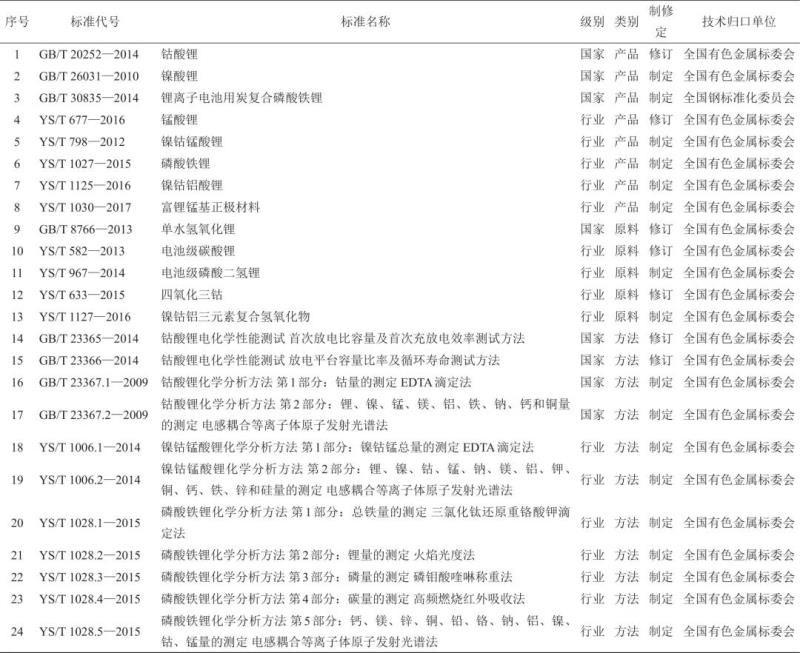 表1 我國鋰離子電池正極材料相關(guān)標(biāo)準(zhǔn)