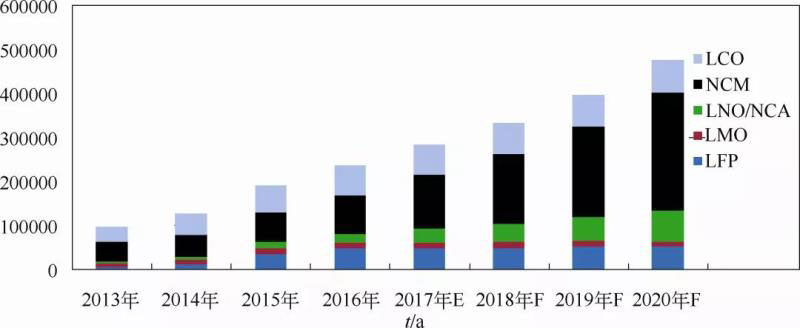圖1 全球鋰電正極材料市場需求及預(yù)測