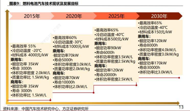 第一階段是燃料電池乘用車的開發(fā)階段,包括豐田、本田、奔馳等乘用車企業(yè)牽頭的燃料電池技術(shù)開發(fā),為燃料電池技術(shù)的發(fā)展奠定了良好的基礎(chǔ),實(shí)現(xiàn)很多技術(shù)難題的突破。