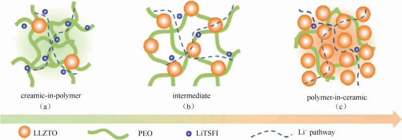 圖2 PEO/LLZTO/LiTFSI不同比例復(fù)合全固態(tài)電解質(zhì)的示意圖