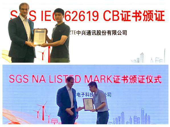 上圖:SGS消費電子產(chǎn)品事業(yè)部首席簽證官Mr. Mark Lohmann(左)向ZTE中興通訊股份有限公司(右)頒發(fā)IEC 62619 CB證書