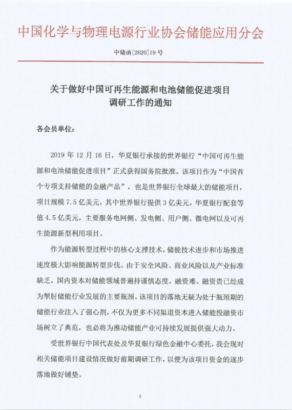 受世界銀行中國(guó)代表處及華夏銀行綠色金融中心委托,我會(huì)現(xiàn)對(duì)相關(guān)儲(chǔ)能項(xiàng)目建設(shè)情況做好前期調(diào)研工作,以便為該項(xiàng)目資金的逐步落地做好鋪墊。