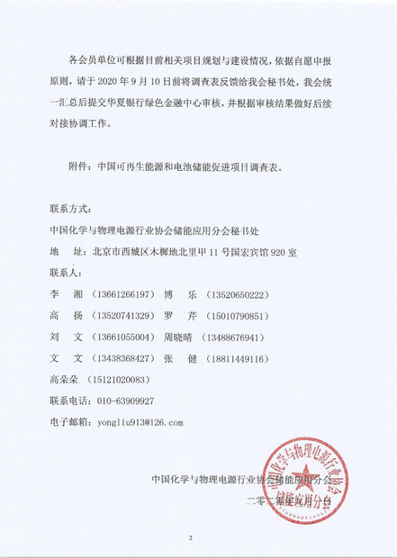 中國(guó)化學(xué)與物理電源行業(yè)協(xié)會(huì)儲(chǔ)能應(yīng)用分會(huì)秘書(shū)處