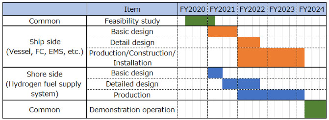 圖2 日本燃料電池船舶商業(yè)化項目時間表