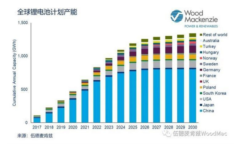 原標題:伍德麥肯茲:預(yù)計2030年,中國鋰電池產(chǎn)能將達到800GWh