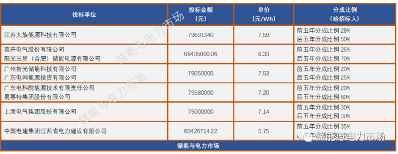 近日,招投標(biāo)網(wǎng)站發(fā)布了該項(xiàng)目的開標(biāo)結(jié)果。包括江蘇大族能源科技有限公司在內(nèi)的9家單位單獨(dú)或者以聯(lián)合體的形式提交了投標(biāo)文件。單位報(bào)價(jià)最低5.75元/Wh,最高7.59元/Wh。