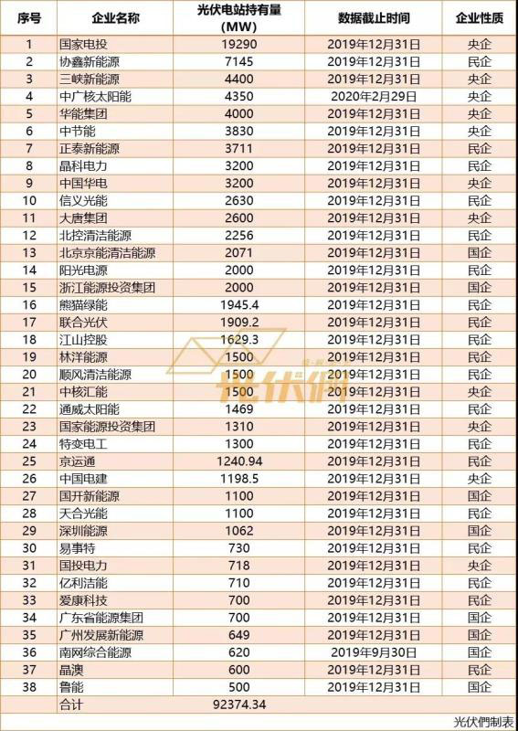 而華能,大唐則在去年開始加大了光伏、風(fēng)電的投資,加快清潔化低碳化的轉(zhuǎn)型。據(jù)悉,2020年上半年華能集團(tuán)新能源項目開工46個、共計4.2GW;新增并網(wǎng)945MW。目前,這兩家企業(yè)的光伏裝機規(guī)模已正式邁入4GW+行列。