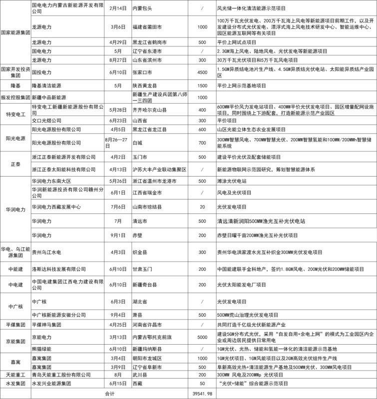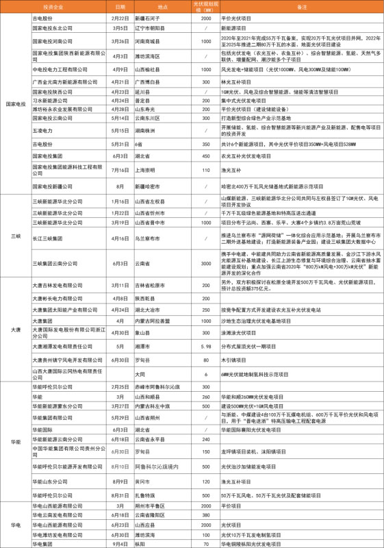 備注:上表匯總了自1月起各企業(yè)簽署擬投建的光伏項目,因項目較多,如有疏漏,歡迎在評論區(qū)留言修正。