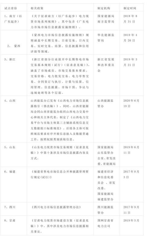 現(xiàn)貨試點(diǎn)省份關(guān)于市場(chǎng)信息披露的規(guī)則