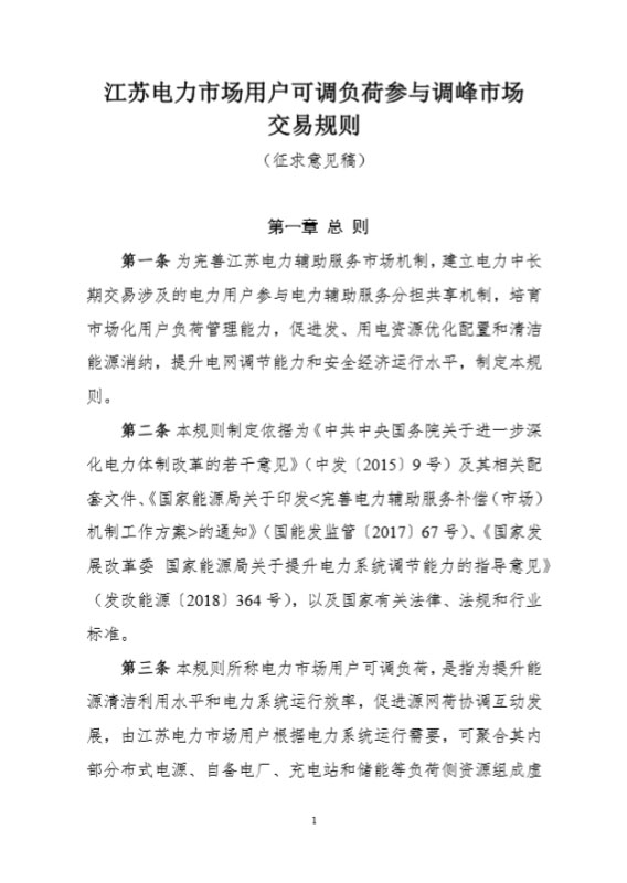 2020年9月11日,國家能源局江蘇監(jiān)管辦公室發(fā)布關(guān)于《江蘇電力市場用戶可調(diào)負(fù)荷參與調(diào)峰市場交易規(guī)則(征求意見稿)》公開征求意見的公告,原文如下: