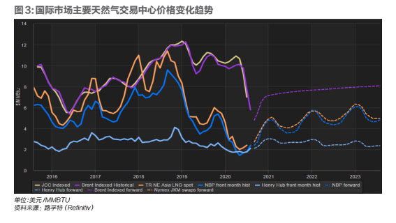 而在成本方面,受疫情及全球天然氣現(xiàn)貨市場(chǎng)價(jià)格下降的影響,今年的氣價(jià)在2019年基礎(chǔ)上進(jìn)一步降低。國(guó)際天然氣市場(chǎng)上,2019年美國(guó)HH(HenryHub)、歐盟TTF和亞洲LNG現(xiàn)貨年均價(jià)格分別為2.56美元/MMBtu(百萬(wàn)英熱單位)、4.48美元/MMBtu和5.98美元/MMBtu。今年上半年,均價(jià)進(jìn)一步下降,分別為1.81美元/MMBtu、2.48美元/MMBtu和3.72美元/MMBtu。