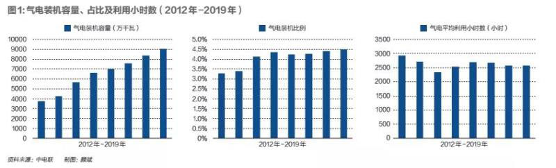全國(guó)來(lái)看,燃?xì)獍l(fā)電的發(fā)展不及預(yù)期。截至2019年底,全國(guó)天然氣發(fā)電裝機(jī)容量達(dá)到9022萬(wàn)千瓦,占總裝機(jī)比例約為4.5%,發(fā)電量為2380億度,占比約為3.3%。而根據(jù)2016年底發(fā)布的《能源發(fā)展“十三五”規(guī)劃》,2020年氣電裝機(jī)規(guī)模要達(dá)到1.1億千瓦,這一目標(biāo)顯然已經(jīng)無(wú)法完成。