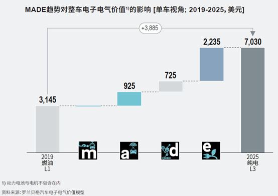 圖3 | 新四化對整車電子電氣價值的變化