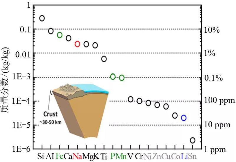 眾所周知,元素周期表中鈉與鋰是處于同一主族且具有相似物理化學(xué)性質(zhì)的金屬元素,地球上鈉資源儲(chǔ)量非常豐富,元素含量約為23000 ppm,豐度位于第6位(圖1),且鈉分布于全球各地,可完全不受資源和地域的限制,所以在資源方面,鈉離子電池比鋰離子電池具有更大的優(yōu)勢(shì)。此外,鈉離子與鋰離子在電池體系中具有類似的脫/嵌機(jī)制(圖3),對(duì)鈉離子電池的研究與開發(fā)可緩解由鋰資源短缺引發(fā)的新能源電池發(fā)展受限的問題。雖然在能量密度等方面與目前的鋰離子電池相比還存在差距,然而在低速電動(dòng)車和儲(chǔ)能應(yīng)用中成本和壽命是比能量密度更重要的指標(biāo),由此可以判斷,鈉離子電池將在低速電動(dòng)車、大規(guī)模電力儲(chǔ)能、5G通信基站、數(shù)據(jù)中心等應(yīng)用領(lǐng)域擁有比鋰離子電池更大的市場(chǎng)競(jìng)爭優(yōu)勢(shì)。