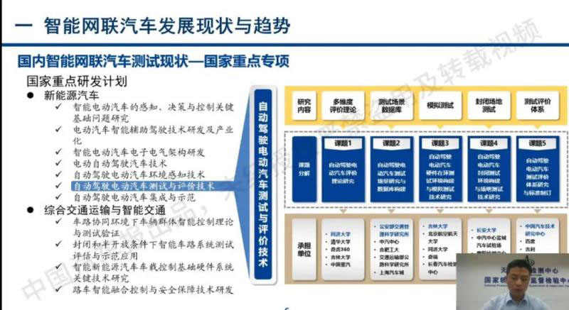 9月16日晚,在《中國汽車報》與廣州智能網(wǎng)聯(lián)汽車示范區(qū)運(yùn)營中心聯(lián)合推出的“2020智能網(wǎng)聯(lián)汽車精品課”第26講中,中國汽車技術(shù)研究中心有限公司首席專家,中汽中心汽車試驗研究所智能網(wǎng)聯(lián)試驗研究部部長秦孔建以“智能網(wǎng)聯(lián)汽車測試評價體系”為主題的演講中,從智能網(wǎng)聯(lián)汽車技術(shù)及產(chǎn)業(yè)發(fā)展現(xiàn)狀、系統(tǒng)測評需求、標(biāo)準(zhǔn)體系、測試評價技術(shù)四方面出發(fā),具體介紹當(dāng)前國內(nèi)外建立智能網(wǎng)聯(lián)汽車標(biāo)準(zhǔn)體系的工作進(jìn)展。