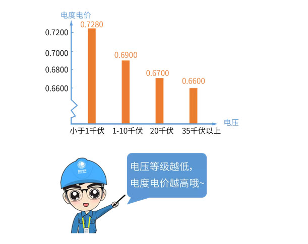 對(duì)不同的電壓等級(jí),實(shí)行不同的電價(jià)計(jì)費(fèi)方式。由于不同電壓等級(jí)的輸配電成本不同,電力的特殊性要求終端電壓與電器設(shè)備的功率相匹配,電需要通過層層降壓送達(dá)用戶。根據(jù)成本補(bǔ)償原則,電價(jià)理應(yīng)補(bǔ)償合理的輸電成本支出,末端最低電壓的用戶輸電成本最高,那么末端最低電壓用戶銷售電價(jià)原則上也最高。