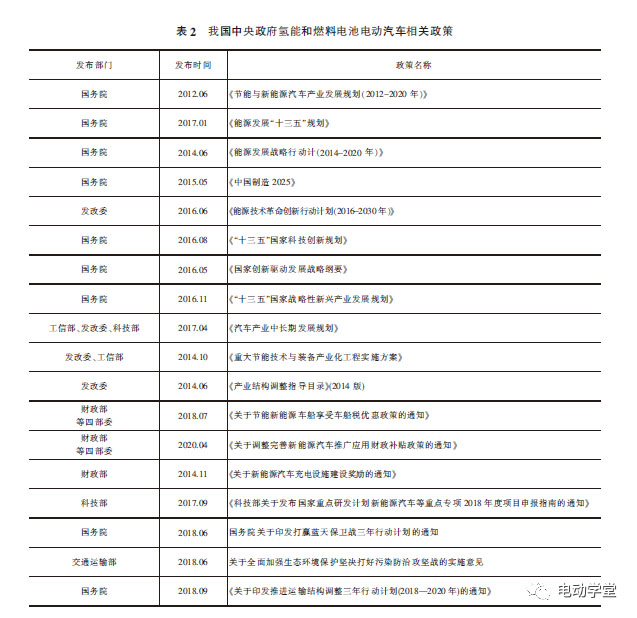 我國中央政府與地方的氫能與燃料電池電動汽車相關(guān)政策如表2所示。