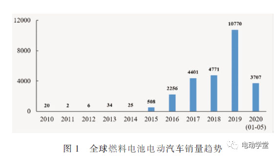 乘用車是前期氫燃料電池電動汽車的主要發(fā)展方向,但近年來動力電池技術(shù)進(jìn)步和成本下降明顯,導(dǎo)致氫燃料電池乘用車的購置和使用成本與純電動汽車相比均不具備優(yōu)勢,推廣總量有限。截止到2020年5月,全球主要國家的燃料電池電動汽車銷量如圖1所示。
